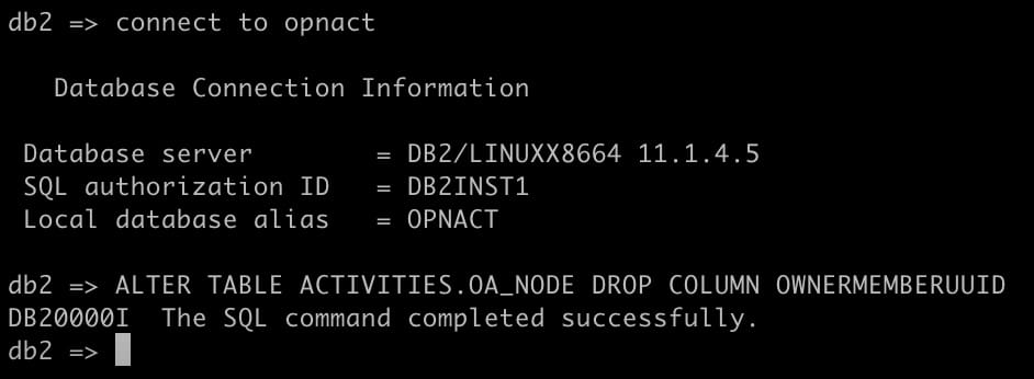 While I was migrating a Connections 7 on premises customer to our cloud using the dbt.jar tool, I came across the issue that the OPNACT database did not want to migrate, it threw an error on the OA_NODE table stating that the source table has 38 columns and the target one 37